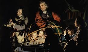 Joseph Wright’s paintings as mentioned earlier illustrated the wonder and horror of science as it was known in the 18th century. He painted portraits of intellectuals, industrialists, and an assortment of wealthy clients. But the work he is perhaps best known for centre’s on a dying bird.The painting depicts a travelling scientist who demonstrates the formation of a vacuum, a lesson provided at the expense of a cockatoo. The bird lay’s in the glass globe at the top of the painting as the scientist withdraws air from the globe using an air pump. If the sight of a dying bird is not enough to generate a response from onlookers, a bowl containing a skull glows in the candlelight that illuminates the scene. The demonstration, conducted before a group of men, women, and children, inspires a gamut of reactions from fear to disinterest, as shown in the eyes of the onlookers.